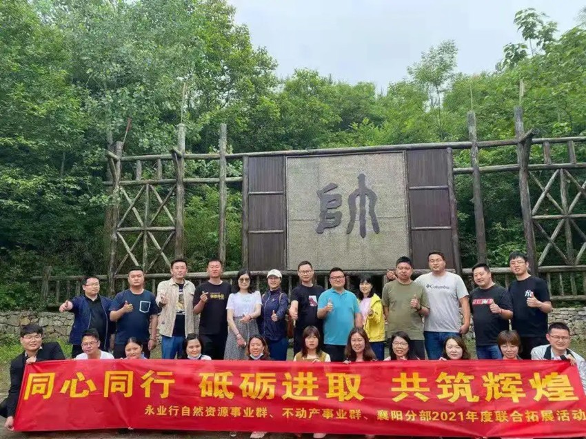 自然资源事业群、不动产事业群、襄阳分部联合开展2021年度拓展活动 2021-05-22 为加强总分部联动,提升团队凝聚力,5月20日-21日,永业行自然资源事业群、不动产事业群、襄阳分部举行“同心同行、砥砺进取、共筑辉煌”2021年度联合拓展活动。 活动第一站来到了印象老家民俗村。在乡村讲解员的带领下,大家参观游览了老家蜂场、乡村民宿、农耕民俗文化馆、水磨坊、豆腐坊等民俗景点,中午品尝了当地特色农家菜,在小河上竹筏泛舟,游玩休息。 下午,拓展训练正式开始。在教练的带领下,各队队员集思广益、团结协作,连续挑战了鼓动人心、动力圈、扑克接力等多个拓展项目,队员们同心协力,各有担当,以强大的默契成功完成挑战。队员们一边享受胜利的喜悦,一边准 MORE