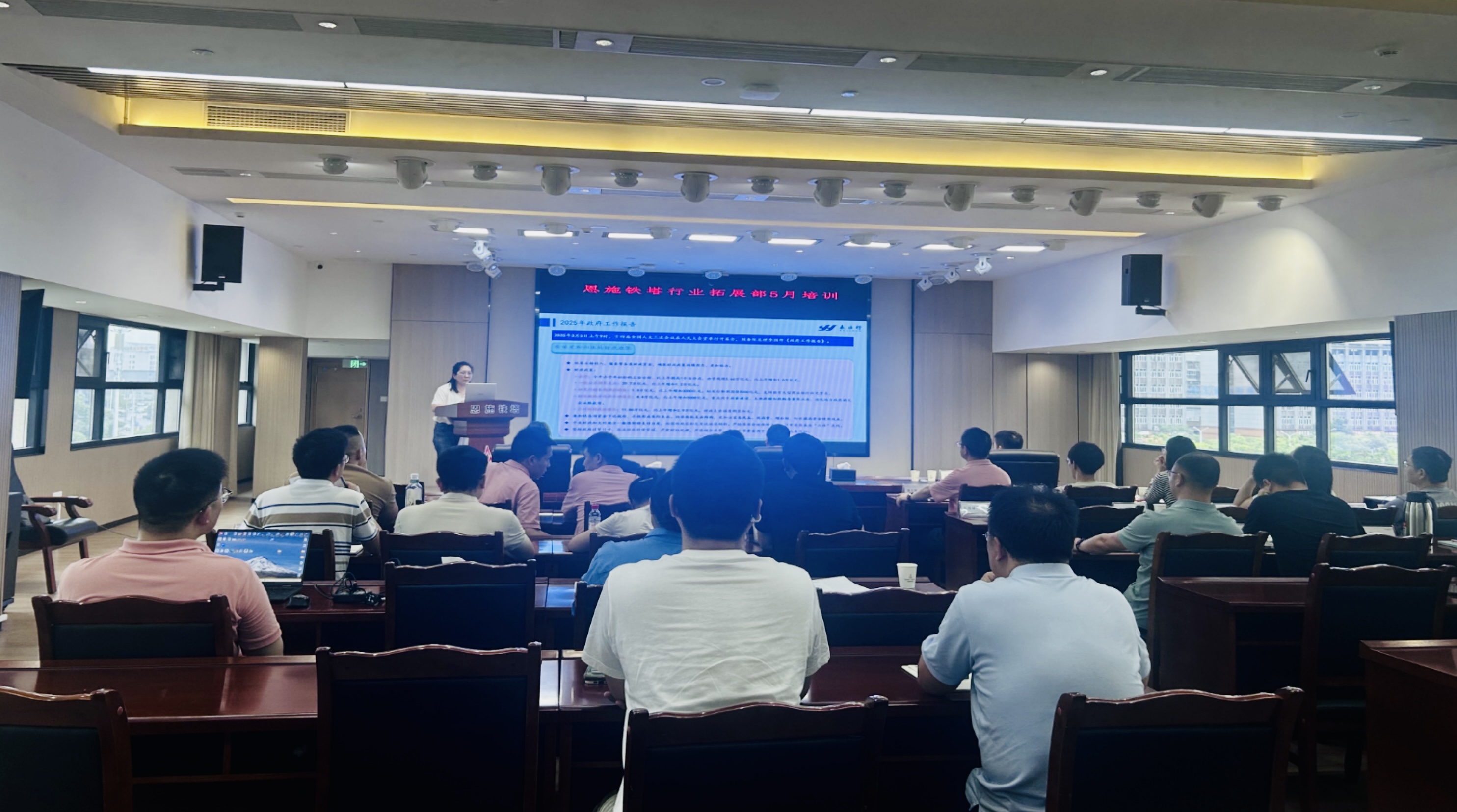 2025年5月16日,中国铁塔股份有限公司恩施州分公司组织开展“恩施铁塔行业拓展部5月培训”。永业行鄂西区技术副总监谭立敏应邀作《新形势下数据领域争资立项谋划实操》专题培训。恩施铁塔公司副总经理刘洋出席会议,业务拓展部经理王毅主持会议。