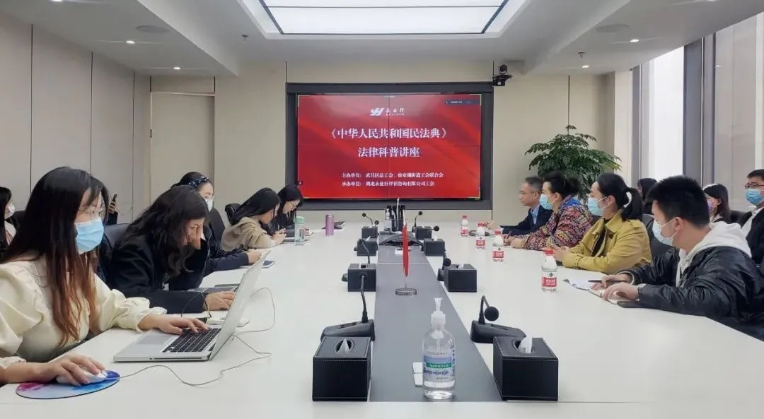 2021年10月27日下午,由武昌区总工会、徐家棚街道工会联合会主办,永业行工会承办的《中华人民共和国民法典》法律科普讲座在绿地办公区举行。此次法律讲堂邀请了资深律师陈亮担任主讲,旨在增强员工的法治意识,深化依法治企工作,帮助员工进一步熟悉了解民法典,形成学法、懂法、守法、用法的良好氛围。来自总、分部100余名员工通过线上和线下的方式参加讲座。