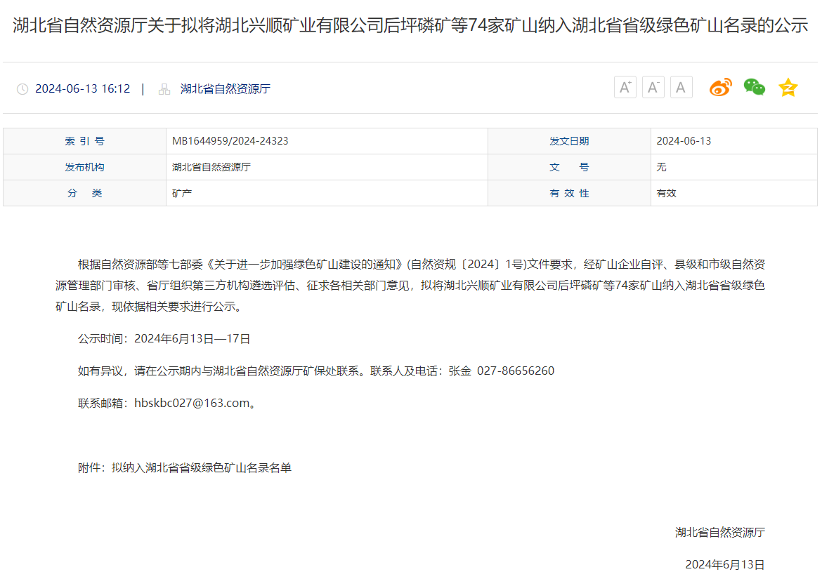 近日,湖北省自然资源厅组织开展湖北省2024年绿色矿山建设成果评审验收工作。永业行承担的宜昌华西矿业有限责任公司浴华坪磷矿、葛洲坝当阳水泥有限公司大沟西矿区水泥用灰岩矿等多家矿山的绿色矿山建设及自评估项目全部通过验收,验收成果获主管部门及验收专家组的一致好评。